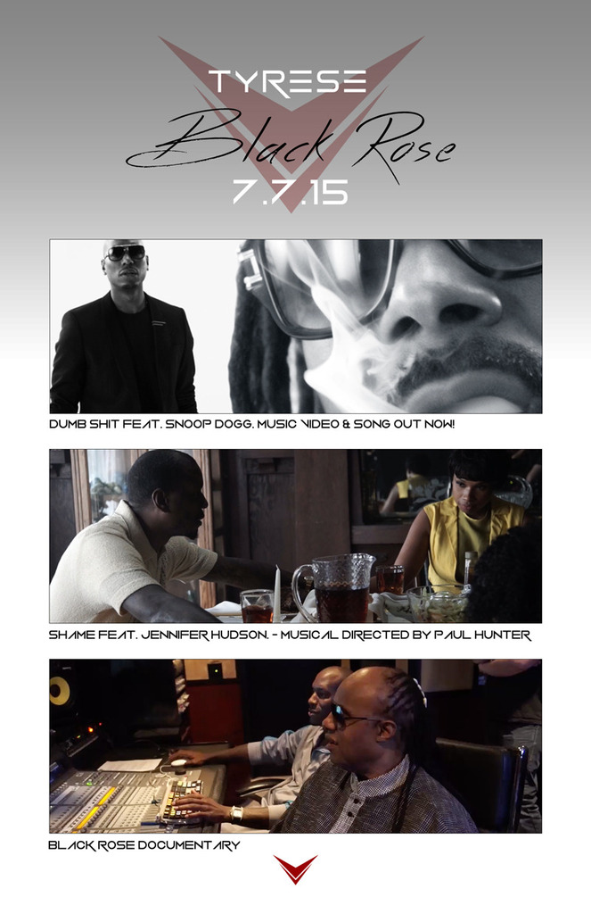 The making “Black Rose” was done in a house Tyrese rented in Arizona.  He gathered up 19 people, rented a bus and house that was set up as music camps, where they prayed together and ate together, it saved one of the members from suicide.  Men and women came for 34 days to the R&B boot camp, when the project was completed they had produced 146 records.  What makes the “Black Rose” album unique is each side reveals the different parts of the man.  The first side is “Black Rose Universe”, while the other side of Black Rose reveals “Black Tie” and from the album itself Tyrese has created a documentary.  Also, a short film set in “1969” where he plays a character that is a mixture of Ike Turner and Marvin Gaye, which stars Jennifer Hudson.  He didn’t stop there, from the album and movie, Tyrese has created his 3rd book, which will be an audio book featuring the instrumentals from the album.  Tyrese said “out of love for his fans, this Black Rose book is truthful and it was hard”.  Check out the complete “Dumb Shit” video featuring Snoop Dog, pay attention to the ending it’s a Tribute to “Baby Boy”, with Chuck Brown. Tate was the only original cast member missing from the shoot.